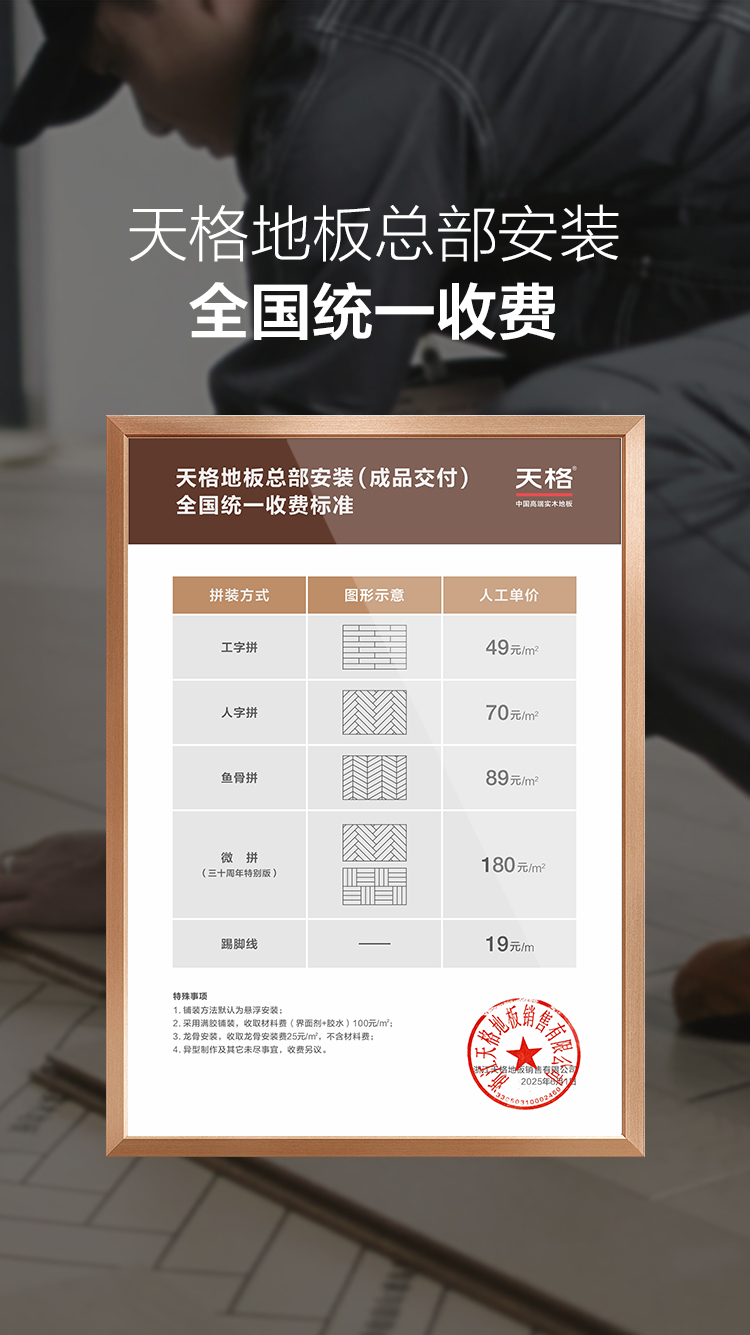 讓服務(wù)價(jià)值更客觀(guān)|天格地板公布總部安裝全國(guó)統(tǒng)一收費(fèi)標(biāo)準(zhǔn)